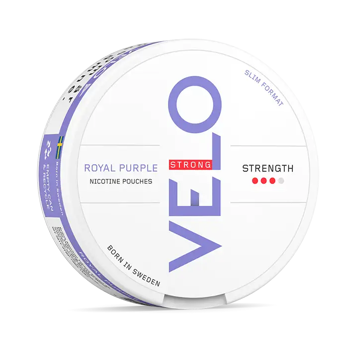 Velo Royal Purple Taste ” with the taste of red grapes now in a strong version and slim format. Born in Sweden”